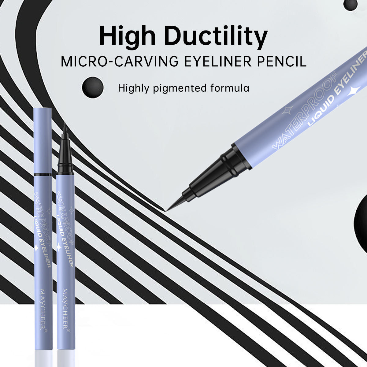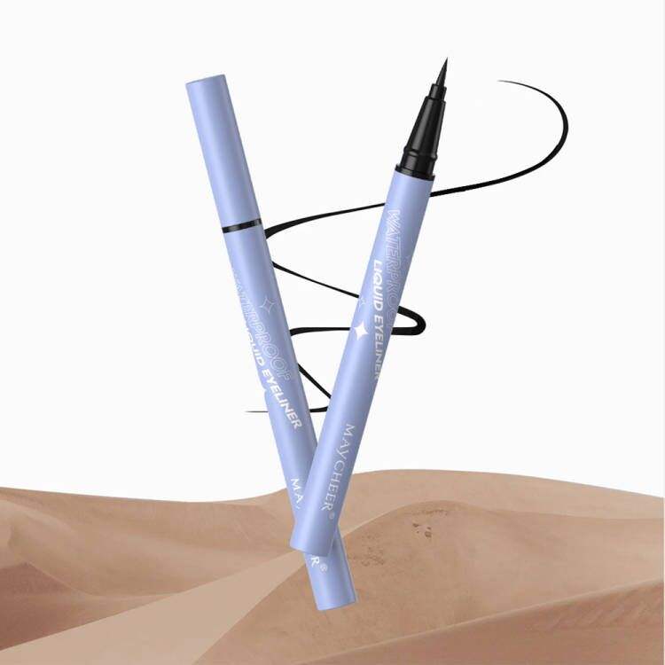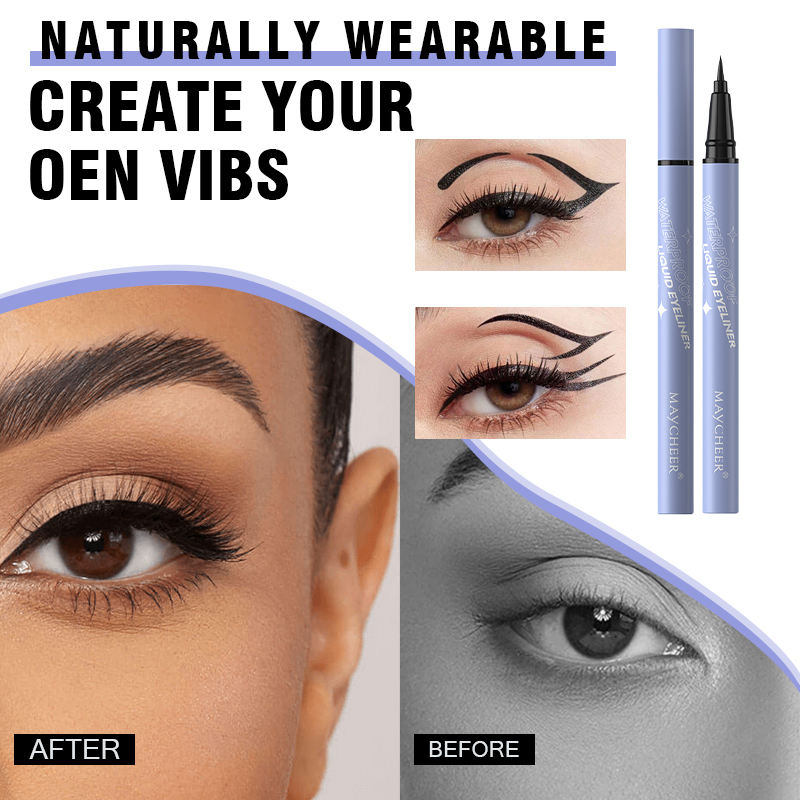 Maycheer Waterproof Liquid Eyeliner — Stay Allday Black Soft Elegance. A fine-tipped liquid pen that delivers ultra-black, waterproof lines with a velvety finish for precise wings and delicate definition.