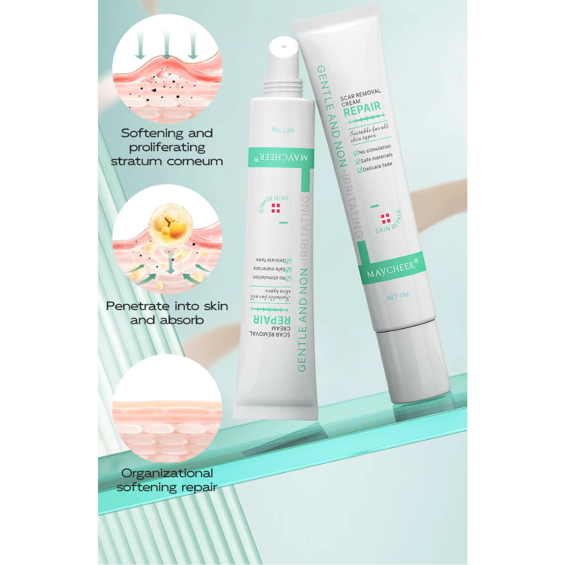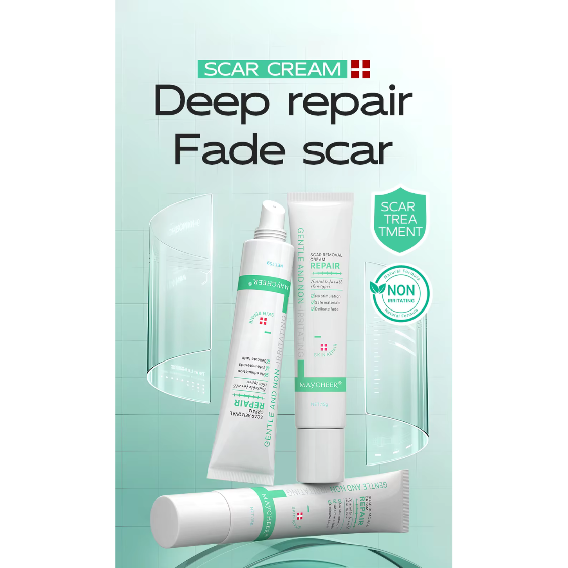 Description: Fade scars gently with MAYCHEER Scar Removal Repair Cream. Formulated for acne marks, surgical scars, and stretch marks, this non-irritating blend promotes skin regeneration and smooth texture. Ideal for daily use on all skin types.